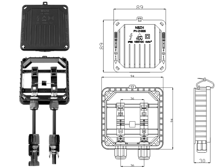 连接线规格: 4-6mm2 (TUV) / 12AWG(UL)