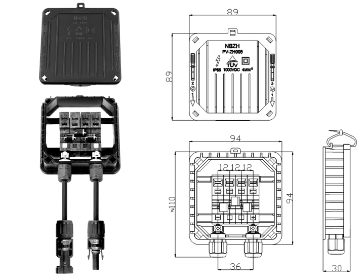 连接线规格: 4-6mm2 (TUV) / 12AWG(UL)